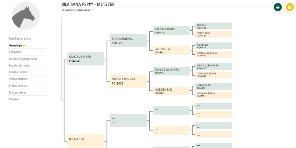 BILA SANA PEPPY Vende-se égua com papel meio sangue, animal muito dócil Idade: 7 anos pelagem: Baio Treinada em Team Penning e Laço Mais informações: Gustavo Borges 034999326442 Abaixo fotos e genealogia do animal: Genealogia